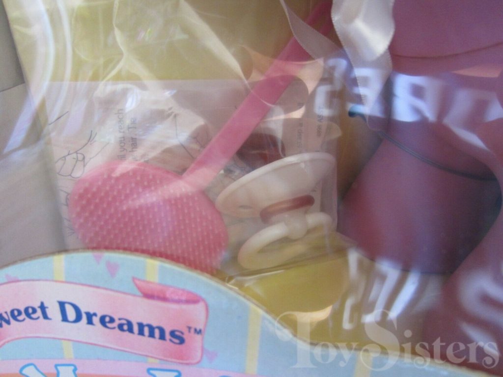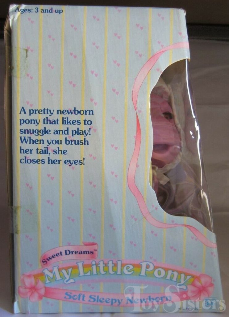 Sweet Dreams came with a white bonnet and panties, a white pacifier, a pink brush, and a ribbon. To return to the Soft Sleepy Newborn menu, click here. To return to the main G1 Pony menu, click here.