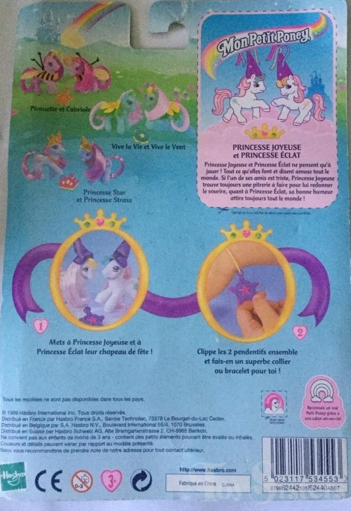 Baby Wiggles and Baby Giggles were released in 2000. They came with two princess hats, a star charm, and castle comb.