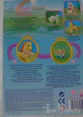 Her Majesty Pearl was released in 2002. She came with a blue shell, band with pearls, orange scarf, and blue comb.