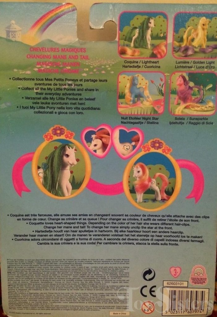 Light Heart was released in 2001. She came with pink/orange and green hair pieces, pink and blue hair clips, and a white comb.