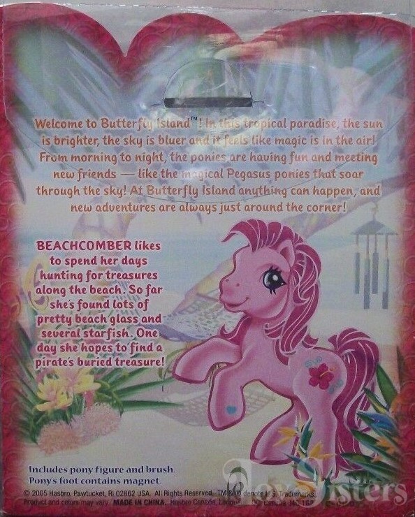 Beachcomber was released in 2005. She is a Dream Design Pony in the Butterfly Island series. She is in the Valenshy pose.