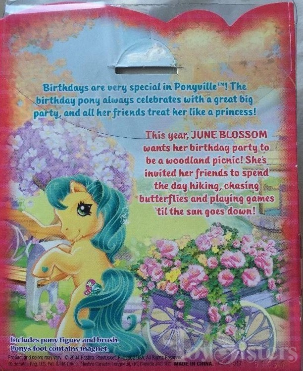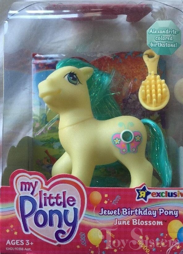June Blossom was released in 2005. She is part of the Toysrus exclusive Jewel Birthday Pony series. She is in the Gem Blossom pose.