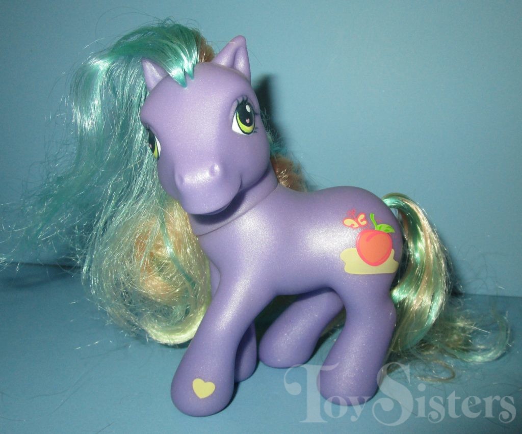 Peach Surprise was released in 2005 with Tea Lily. She was originally an Avon exclusive. The same set was later available from JC Penney. The ponies from this set are prone to having their hair become brittle and break/fall out.