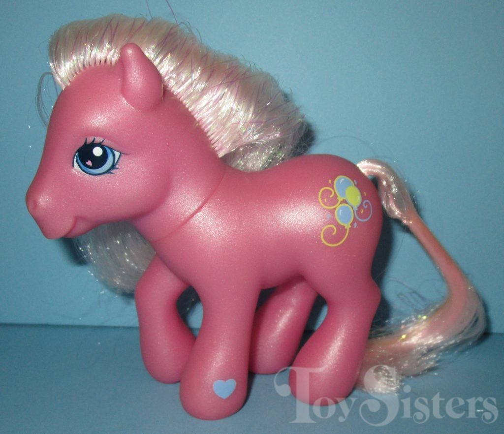 In 2005, this version of Pinkie Pie was released at discount stores with bonus Baby Bellaluna. She is in the Sunshower pose.