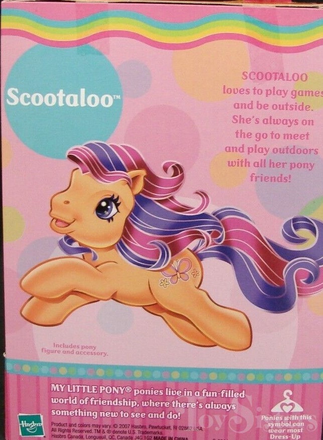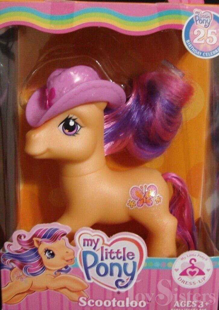 This version of Scootaloo was released in 2007. She is a Favorite Friends Pony in the 25th Birthday Celebration series. She is a Dress Up Pony in the Twinkle Hope pose.