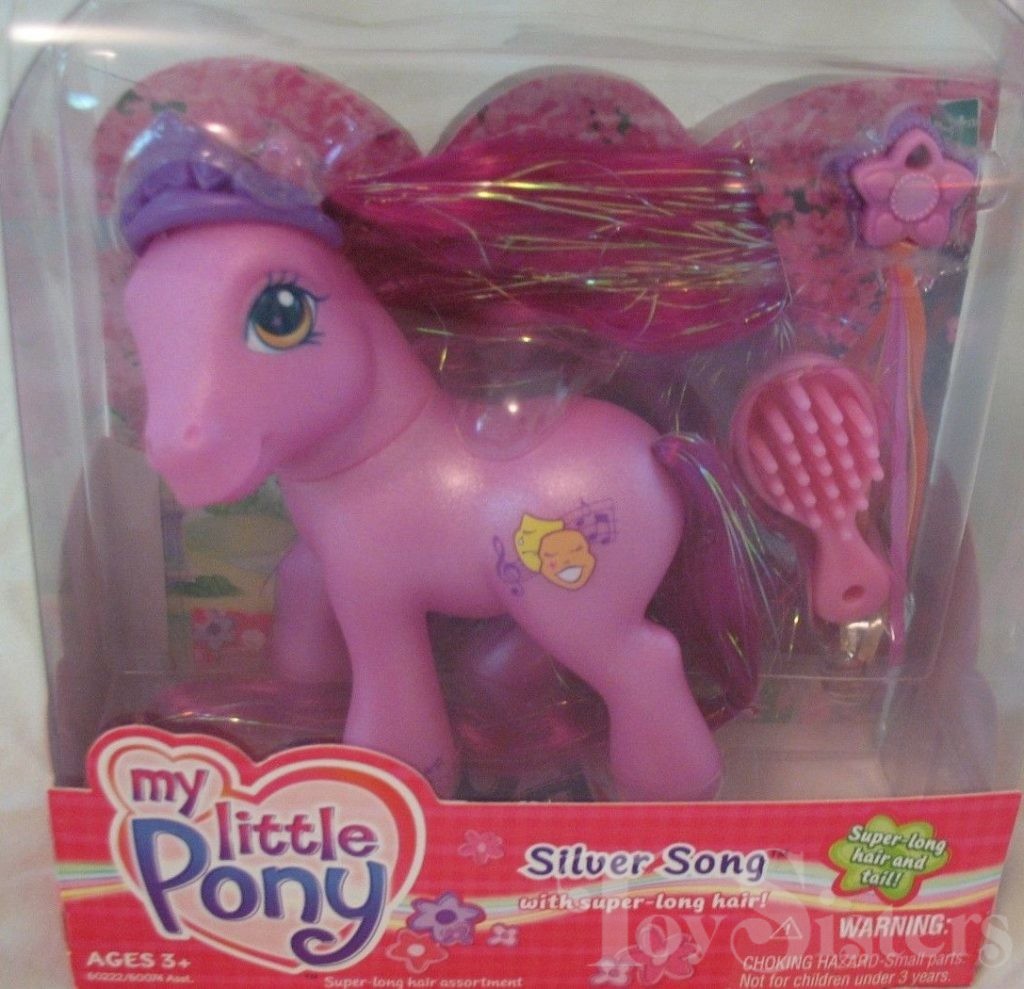 Silver Song was released in 2004. She is a Super Long Hair Pony and is in the Rainbow Dash pose.