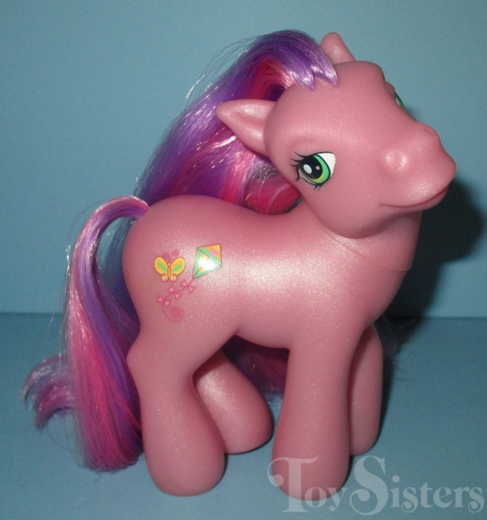 Also in 2005, Skywishes was released in the Dress Up Fun set.  This version was sold at discount stores.  This version has a darker body and brighter pink kite bows on her symbol.