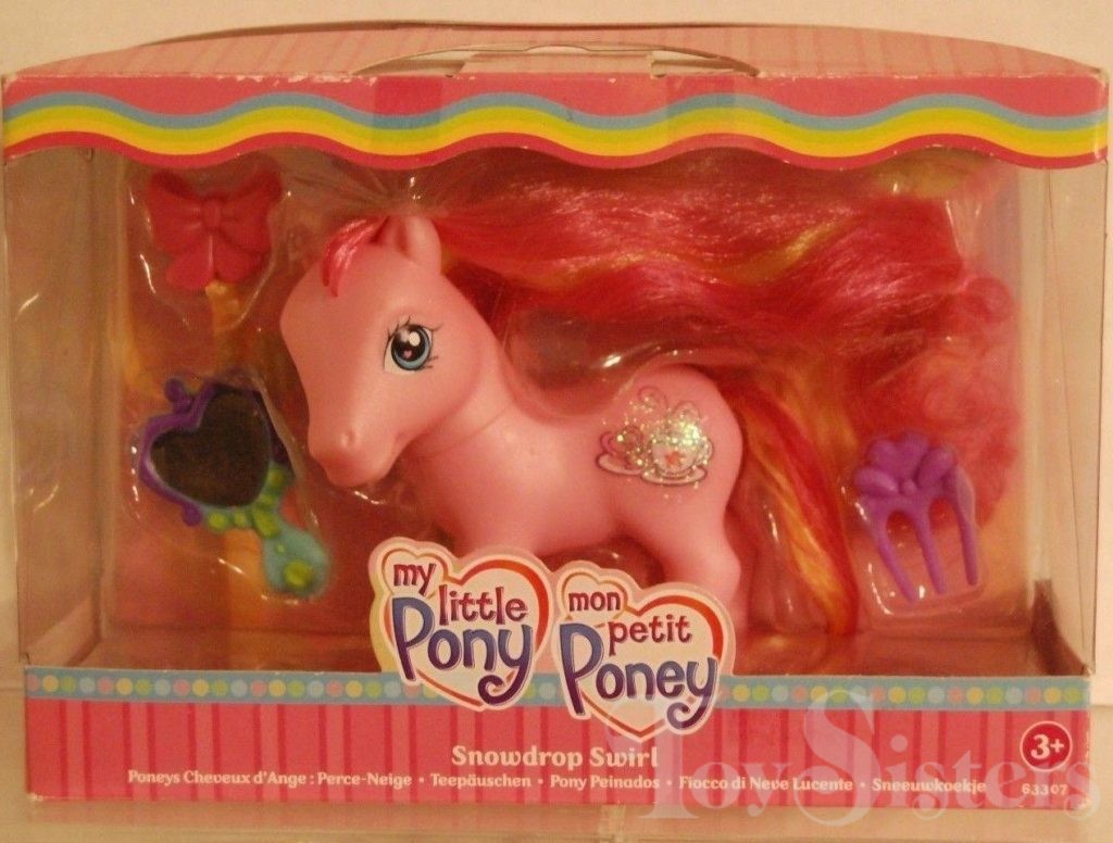 Snowdrop Swirl was released in 2007. She is a Super Long Hair Pony and was only sold internationally. She is in the Wysteria pose.