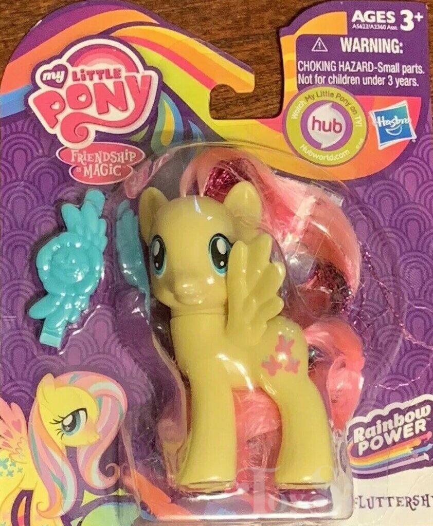This version of G4 Fluttershy was released in the Rainbow Power Single. In Europe, she had a lighter body and lighter pink hair.