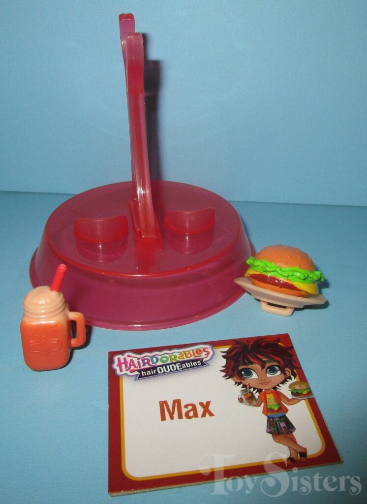 BBQin’ Max was released in Hairdudeables Series One. He came with a burger, drink, stand, name card, and series insert. He was packaged with Willow Cakes. He was also later sold individually in a mystery box that contained a Dude from Series One or Two (but had Series 3 Dudes on the box- it was very confusing). To return to Hairdudeables Series One, click here. To return to the Max character page, click here.
