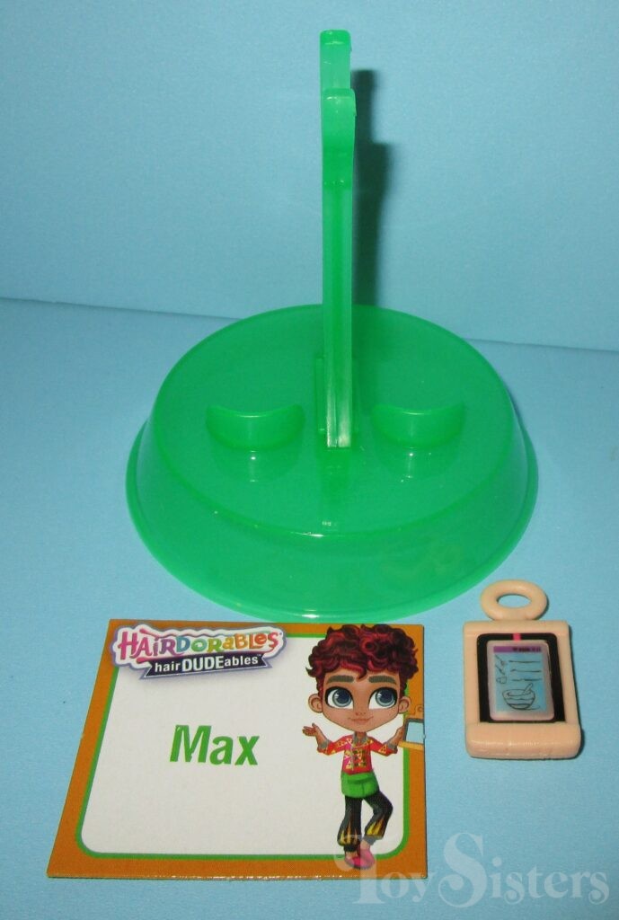 Snack Attack Max was released in Hairdudeables Series One. He came with a food item, stand, name card, and series insert. He was packaged with DeeDeeSert. He was also later sold individually in a mystery box that contained a Dude from Series One or Two (but had Series 3 Dudes on the box- it was very confusing). To return to Hairdudeables Series One, click here. To return to the Max character page, click here.