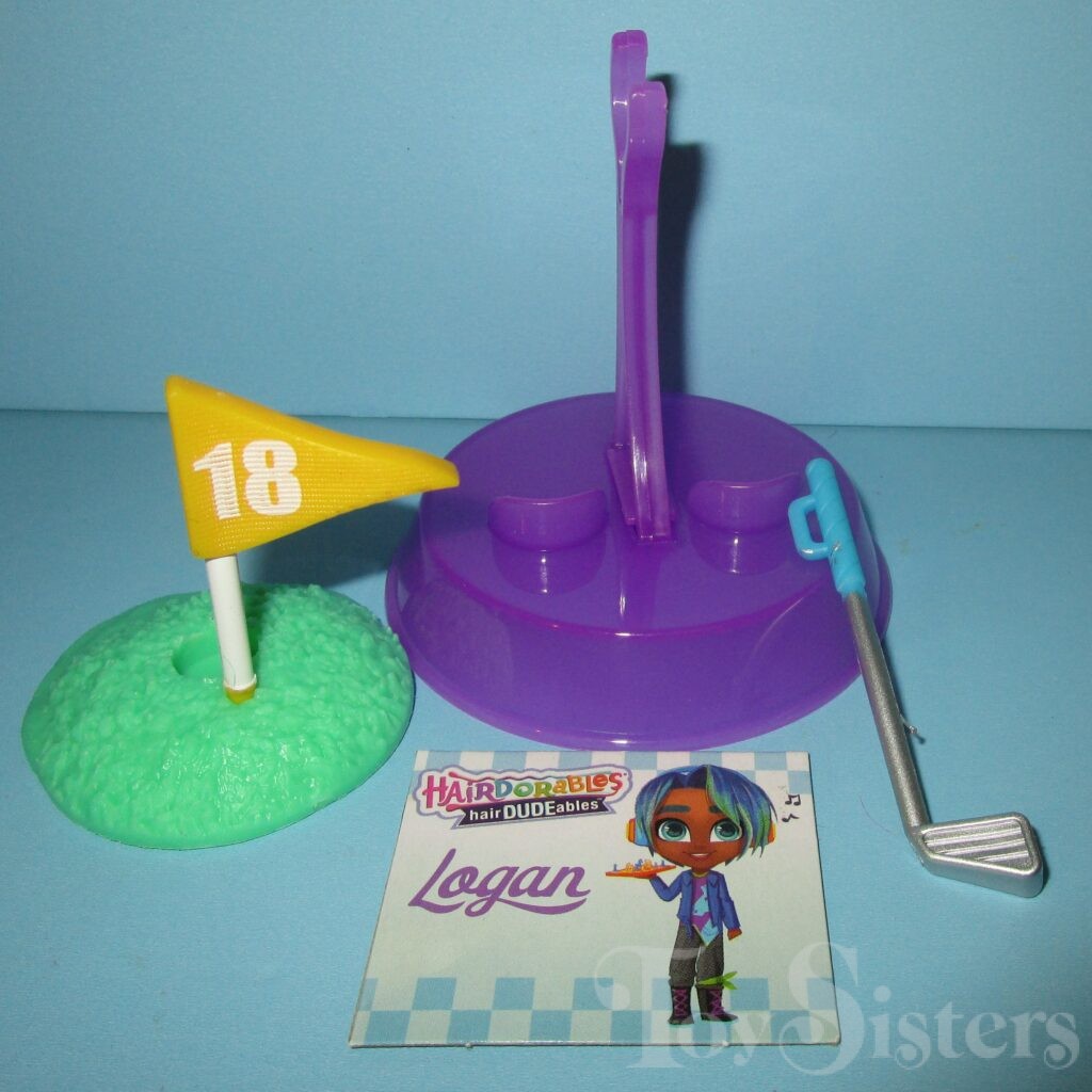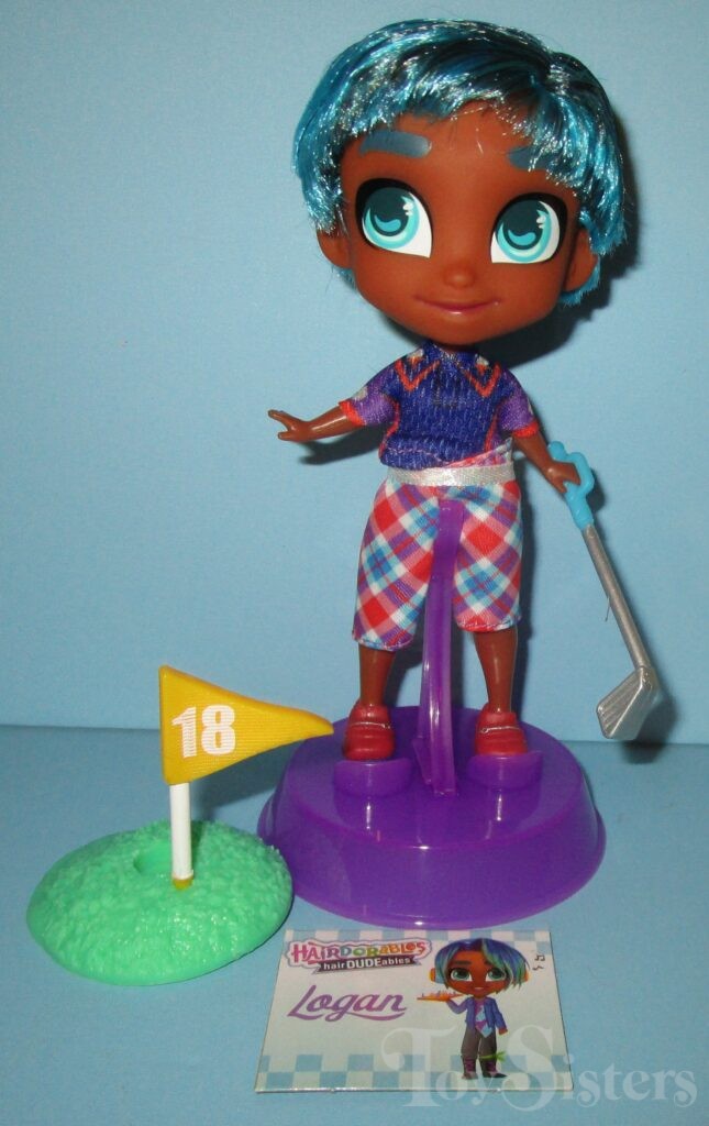 Hole in One Logan was released in Hairdudeables Series Three. He came with a golf club, stand, name card, and series insert. The Series 3 Hairdudeables box was also used to sell an assortment containing Series 1 & 2 Hairdudables (no series 3 dudes were in the set even though they were on the box- it was very confusing). To return to Hairdudeables Series Three, click here. To return to the Logan character page, click here.