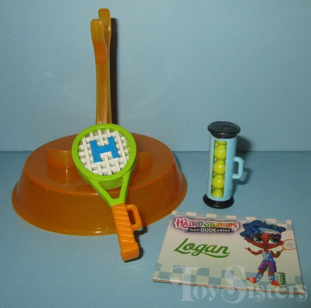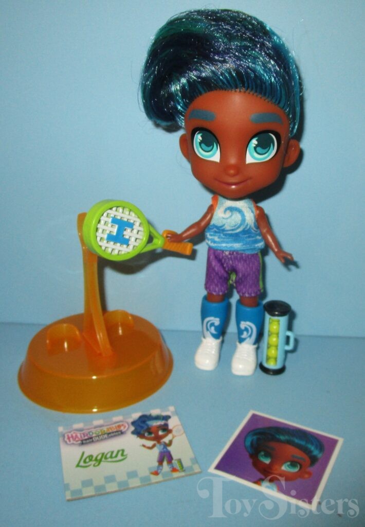 Servin’ Logan was released in Hairdudeables Series Two. He came with a racket, balls, stand, name card, and series insert. He was packaged with Tennis Time Neila. He was also later sold individually in a mystery box that contained a Dude from Series One or Two (but had Series 3 Dudes on the box- it was very confusing). To return to Hairdudeables Series Two, click here. To return to the Logan character page, click here.