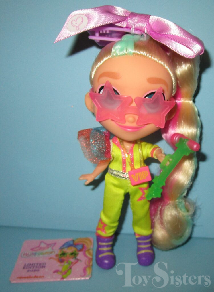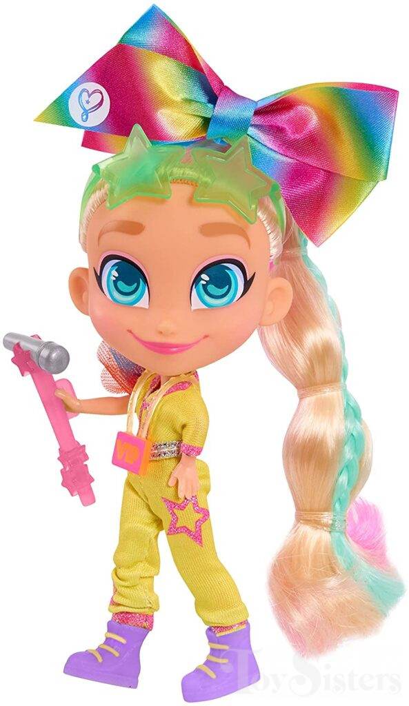 This Jojo Siwa came with a hair bow, microphone, glasses, vip pass, and character card. To return to the Jojo release menu, click here. To return to the Jojo character page, click here.