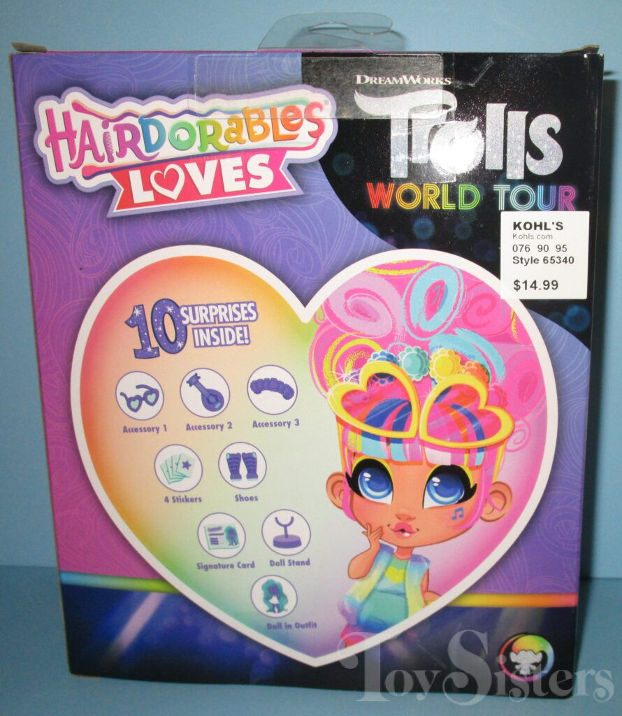 Hairdorables Loves Trolls Harmony was released in 2020. She came with a guitar, sunglasses, stickers, and stand. To return to Special Editions, click here. To return to the Harmony character page, click here.