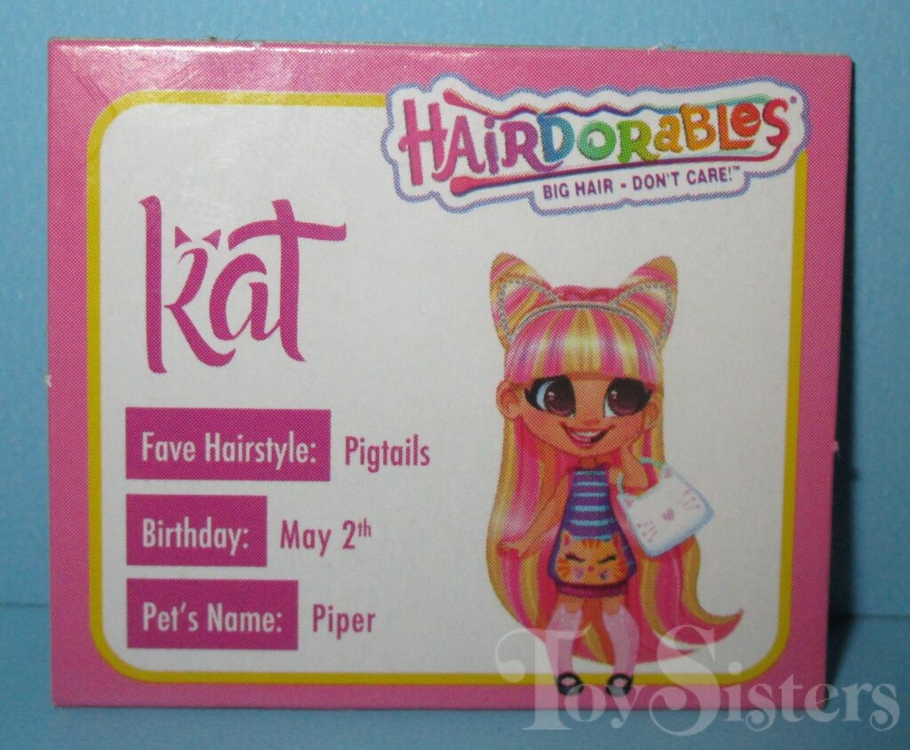 Kat Tastic was released in Series Two. She came with a bag, cat ears, stand, comb, stickers, series insert, and a name card. To return to Series Two, click here. To return to the Kat character page, click here.