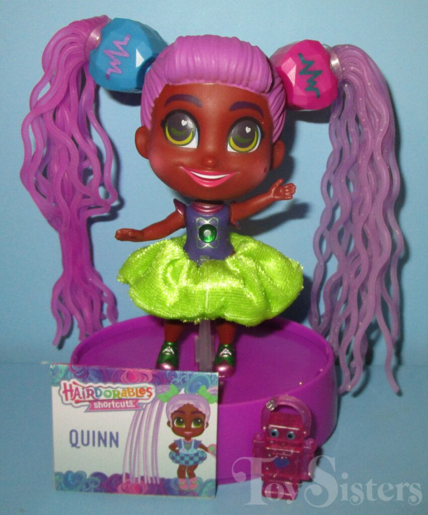 QT Quinn was released in Shortcuts Series Two. She came with an accessory, hair clip, series insert, and a name card. To return to Shortcuts Series Two, click here. To return to the Quinn character page, click here.