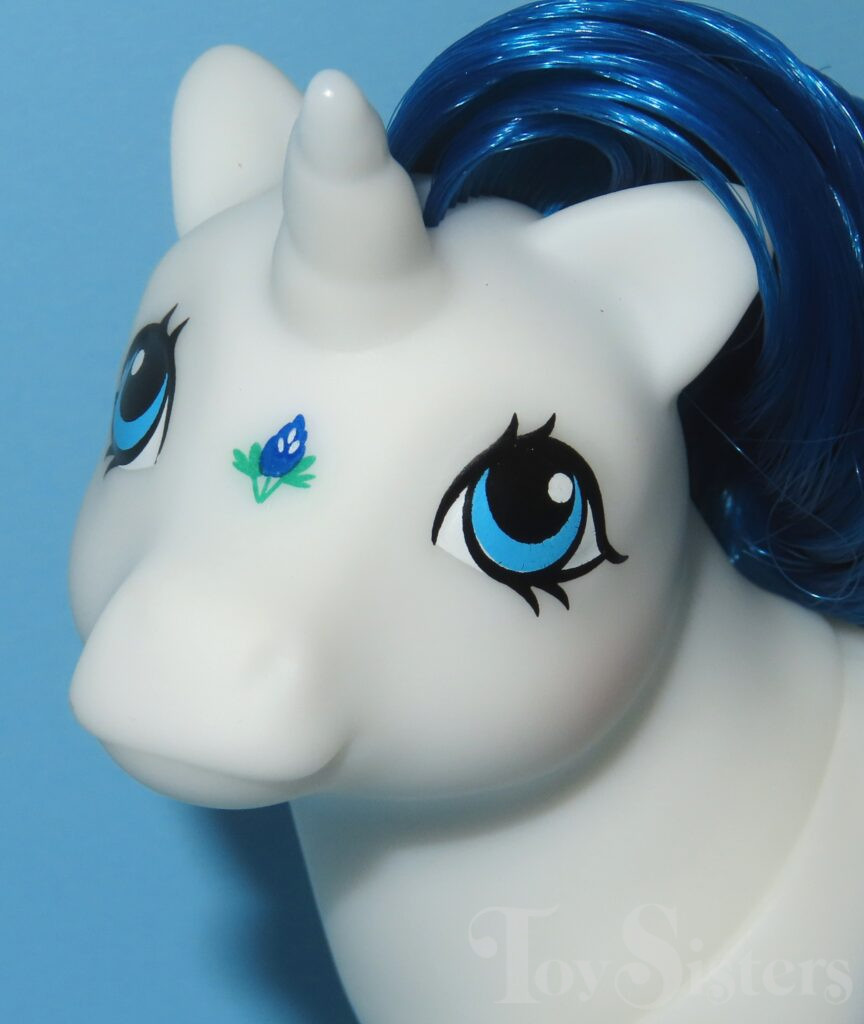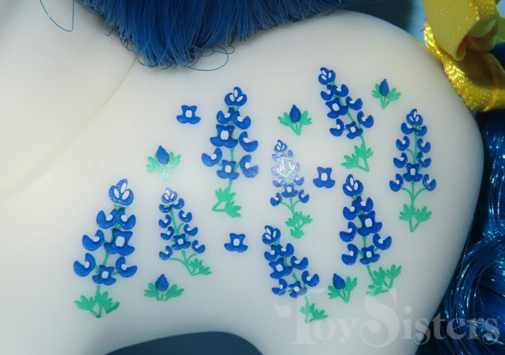 Baby Bluebonnet was released in 2025 at the Pony Friends Forever Convention. She is an Exclusive Pony. She is in the Baby Glory Pose. To return to the HQG1C menu, click here. To view the ponies by series instead, click here.