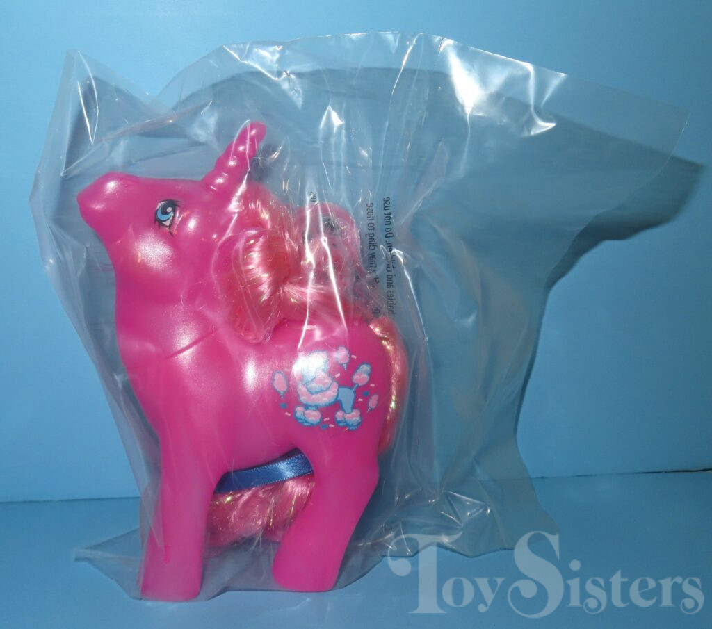 Pinkie Poodle was released in 2025 at the Pony Friends Forever Convention. The Sugar Shine edition was limited to 150 pieces. She is an Exclusive Pony. She is in the modified Powder Pose. To return to the HQG1C menu, click here. To view the ponies by series instead, click here.