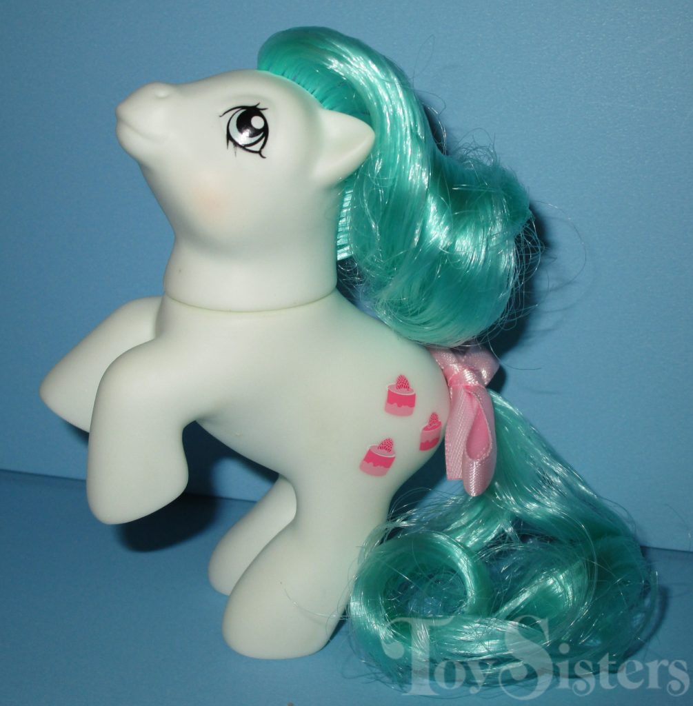 Berry Buttercream is a Sweet Treat Sister. She was first available for sale in the 2018 Mega Bundle. She would later be sold individually and in sets with her sister. She came packaged with a pink ribbon. Her color is a bit off-white because she came scented. To return to the HQG1C menu, click here. To view the ponies by series instead, click here.