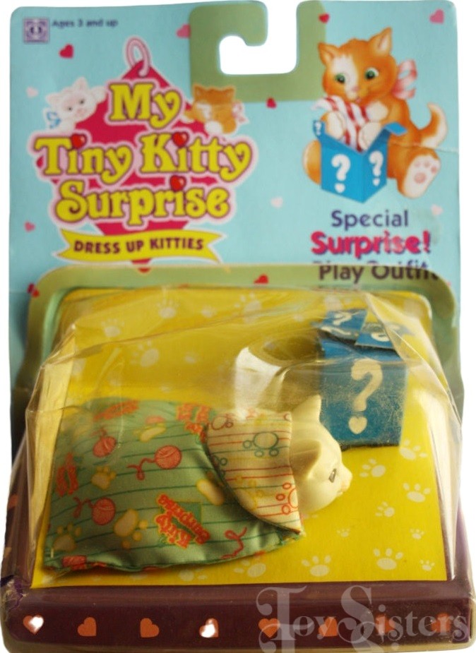 Some babies came packaged separately, rather than with mothers. Here are some pictures of a boxed single release kitty. They came with surprise boxes that contained a mystery fashion for them to wear.