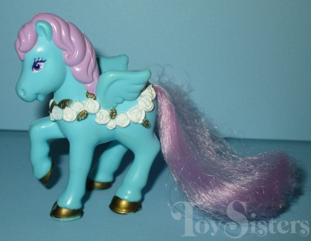 Moon Dreams Pegasus came with a dome, a stable piece, and a comb. To return to the Krystal Princess Unicorn & Pegasus menu, click here. To return the main Krystal Princess menu, click here.