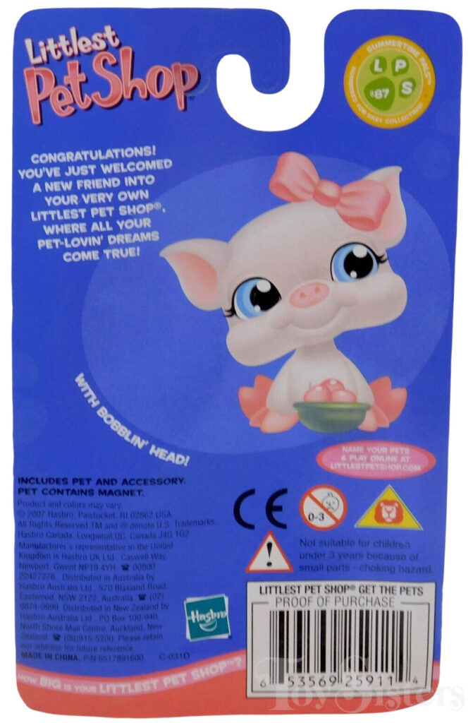 Pet #87 came in a Pet Pairs pack with #88, a single, a Costco Case, the Sam’s Club Biggest Littlest Pet Shop, the Littlest Pet Shop Monopoly Game, a Target Single (as duplicate #305), a Kohl’s Carrying Case, and as a Biggest Littlest Pet Shop Bonus.