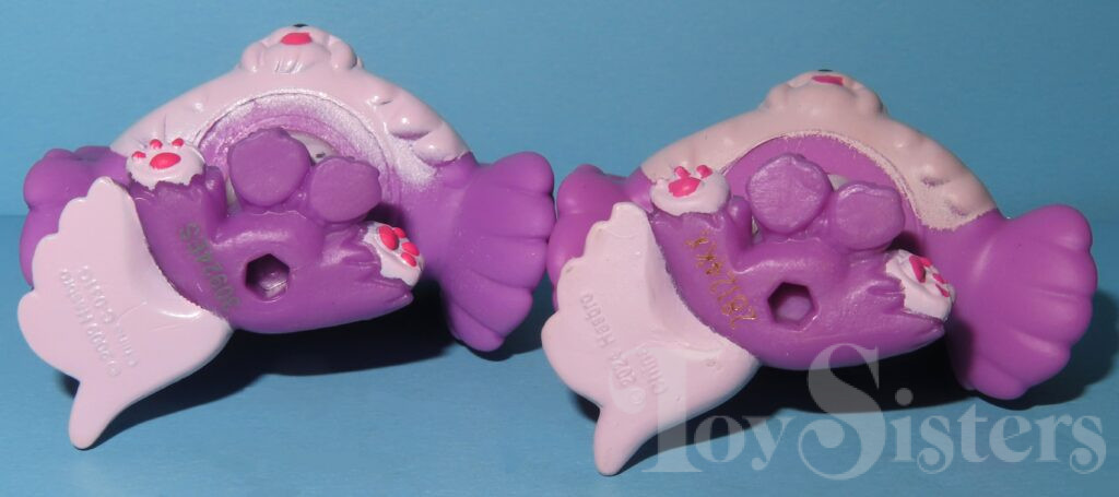 These blind boxes could be found with either a KX or ES (pictured above) code. The painted portions of the ES pets are more pixelated and have a glossier finish. The painted portions of the KX pets lack the pixelation, but they are often sloppy and inconsistent. The KX pets themselves are also are smaller and made of a harder plastic. KX and ES pets sometimes differ subtly in color.