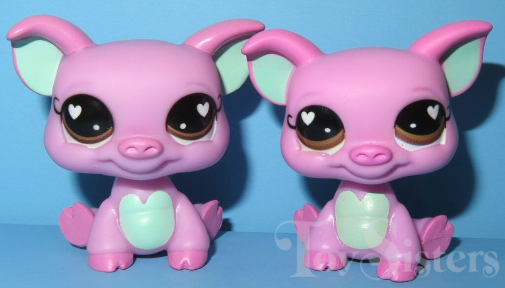 These blind boxes could be found with either a 02 or 01 (pictured above) code. The painted portions of the 01 pets are more pixelated and have a glossier finish. The painted portions of the 02 pets lack the pixelation, but they are often sloppy and inconsistent. The 02 pets themselves are also are smaller and made of a harder plastic. 01 and 02 pets sometimes differ subtly in color.
