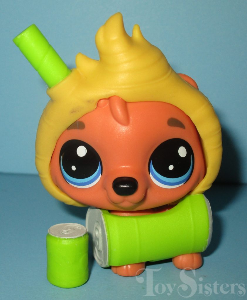 Continuing with the packaged food theme, Series 4 Pet #151 came in a mystery package shaped like a soda can. This blind bag wave was referred to on retailer sites as Thirsty Pets. Each pet came with a drink-related accessory and wearable items.