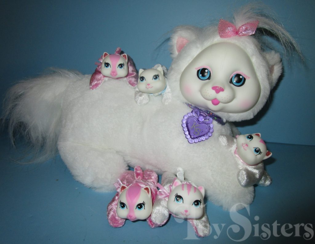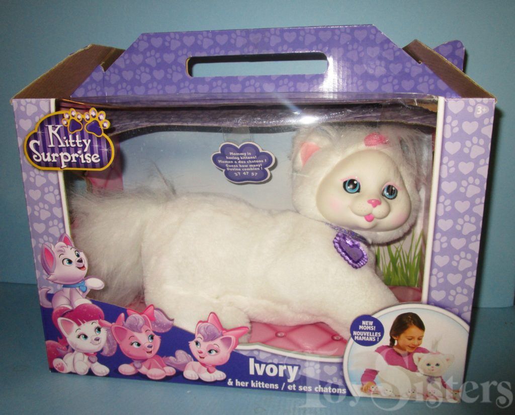 Ivory is a Kitty Surprise mommy plush released by the toy line Just Play. She could come with three, four, or five kittens tucked in her tummy pouch. To see other Just Play mommy cats, click here.