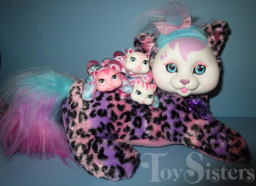 Mia is a Kitty Surprise mommy plush released by the toy line Just Play in 2020. She could come with three, four, or five kittens tucked in her tummy pouch. To see other Just Play mommy cats, click here. Mia came with the same kittens as Tasha.