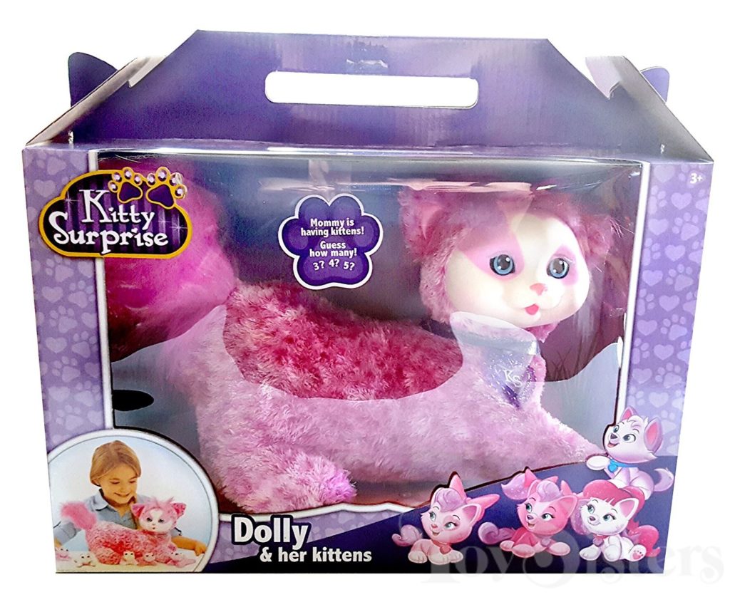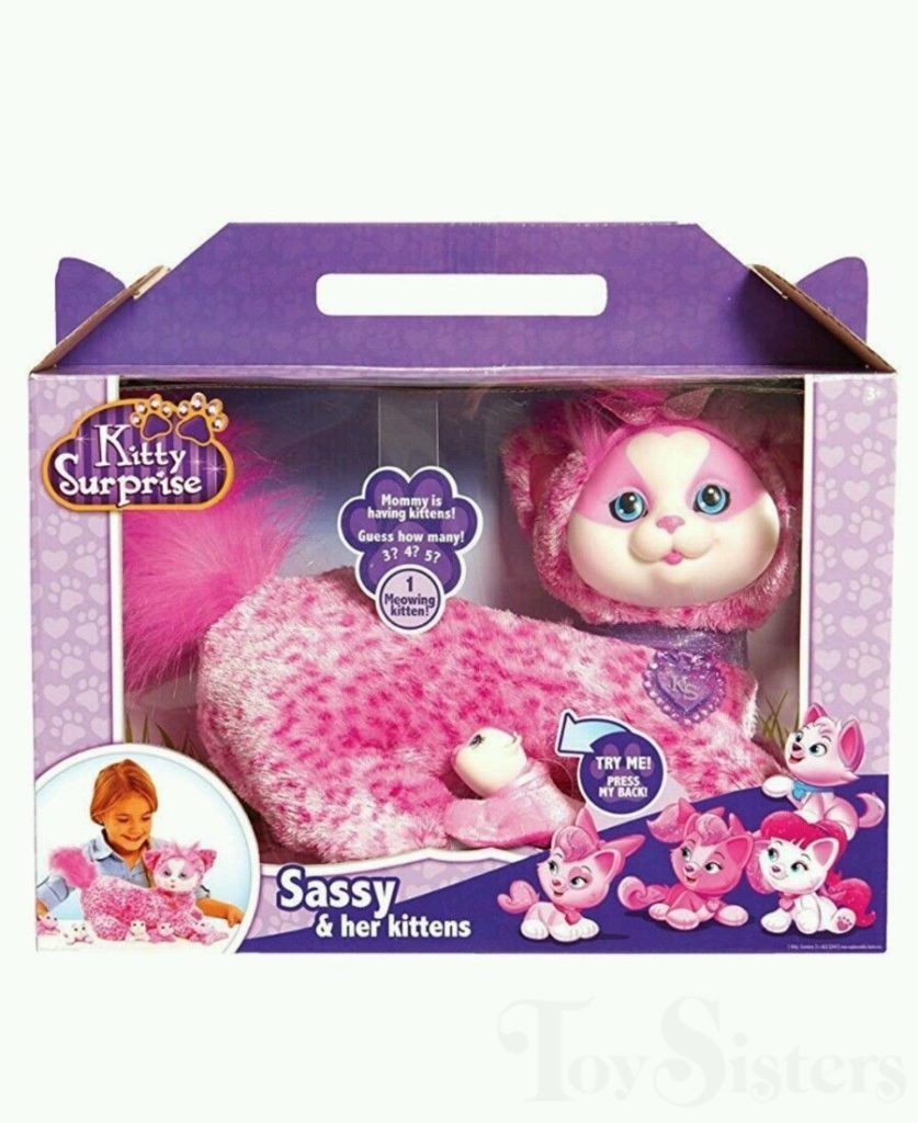 Sassy / Dolly is a Kitty Surprise mommy plush released by the toy line Just Play. She could come with three, four, or five kittens tucked in her tummy pouch. To see other Just Play mommy cats, click here.
