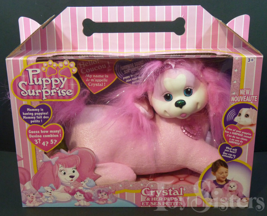 Crystal/Tess is a Puppy Surprise mommy plush released by the toy line Just Play. She could come with three, four, or five puppies tucked in her tummy pouch. To see other Just Play mommy dogs, click here.