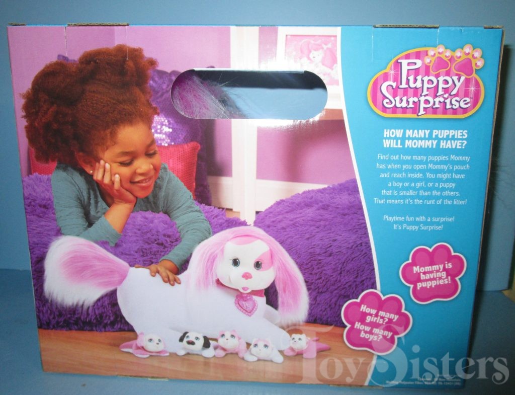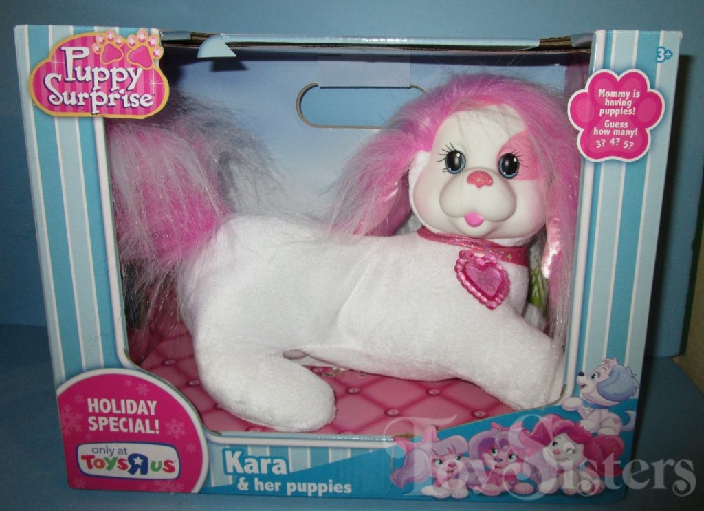 Kara is a Puppy Surprise mommy plush released by the toy line Just Play. She could come with three, four, or five puppies tucked in her tummy pouch. To see other Just Play mommy dogs, click here.