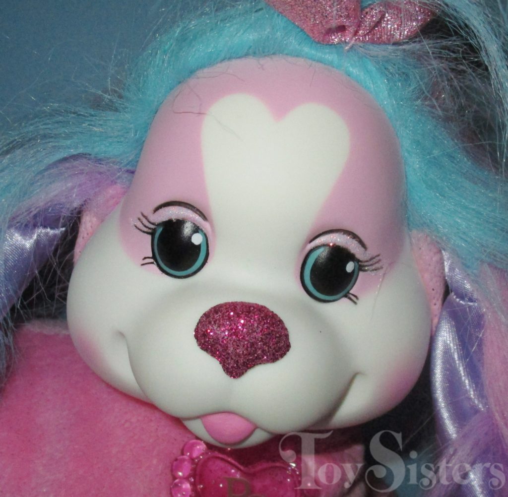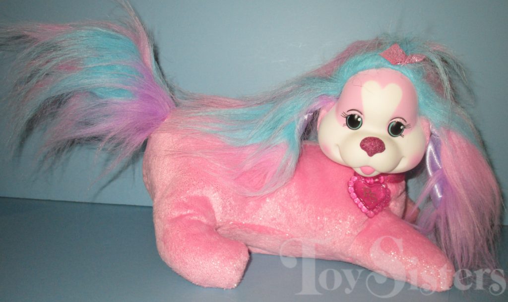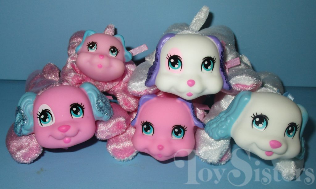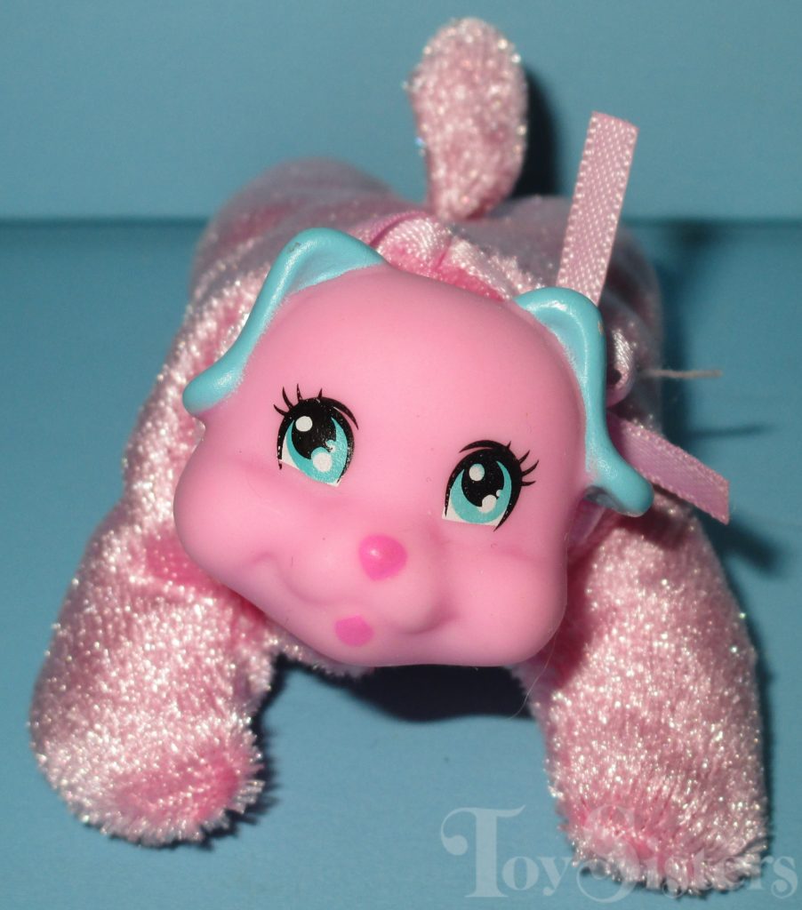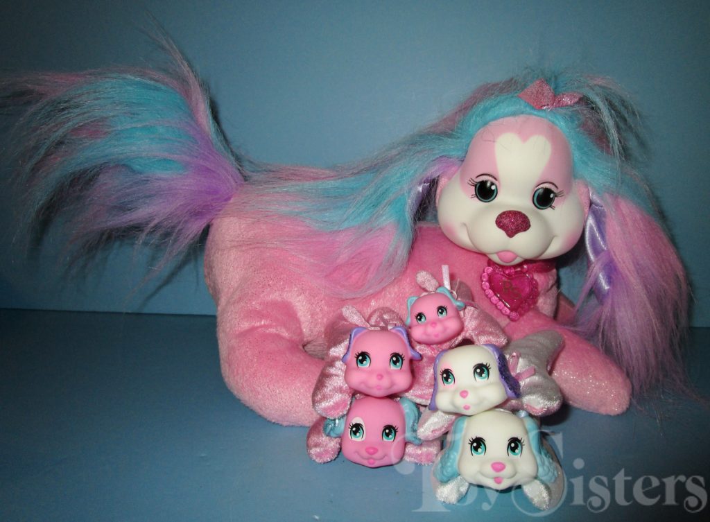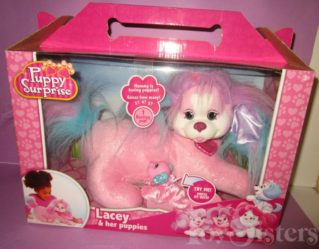 Lacey is a Puppy Surprise mommy plush released by the toy line Just Play. She could come with three, four, or five puppies tucked in her tummy pouch. To see other Just Play mommy dogs, click here.