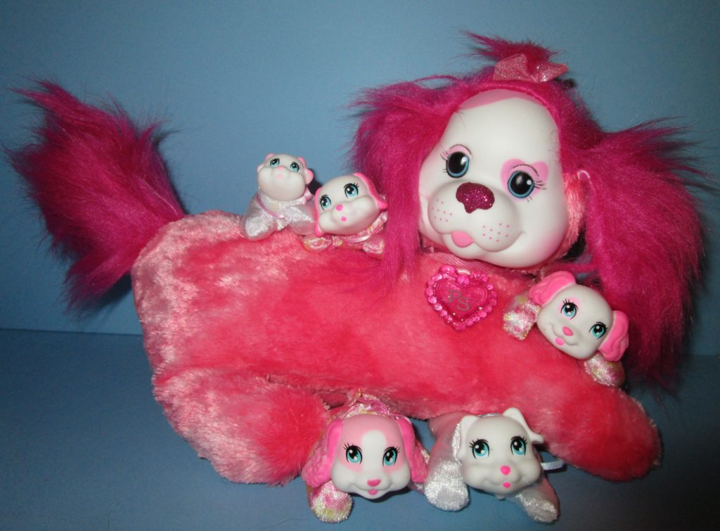 Lia is a Puppy Surprise mommy plush released by the toy line Just Play. She could come with three, four, or five puppies tucked in her tummy pouch. To see other Just Play mommy dogs, click here.