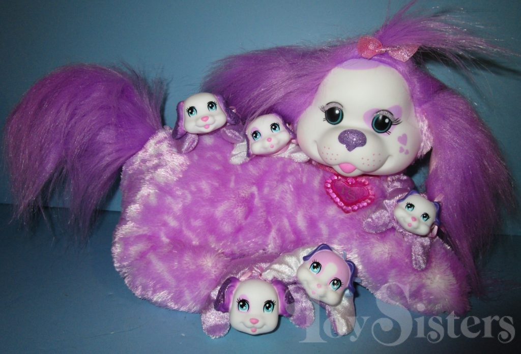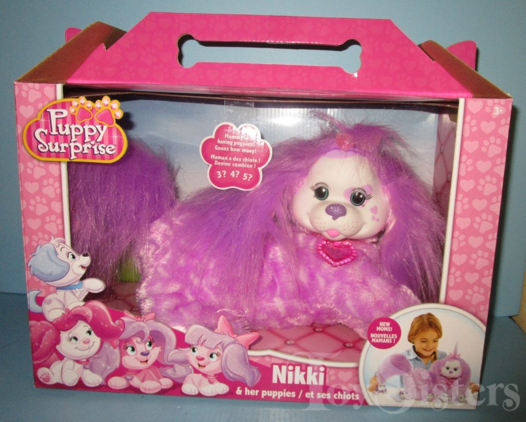 Nikki is a Puppy Surprise mommy plush released by the toy line Just Play. She could come with three, four, or five puppies tucked in her tummy pouch. To see other Just Play mommy dogs, click here.