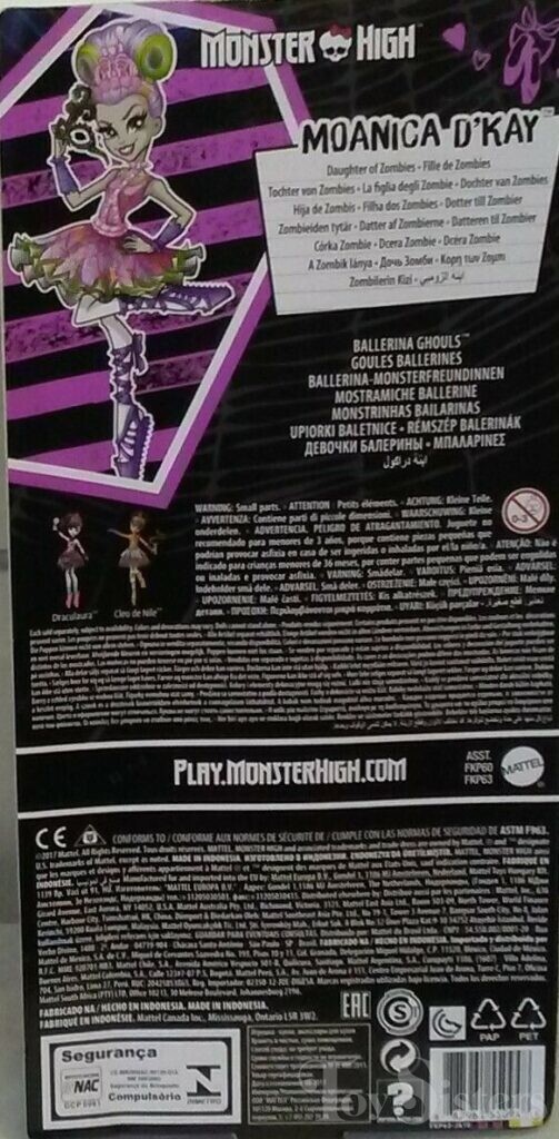 Ballerina Ghouls Moanica D’Kay was released in 2018. She came with a mask. To see the other releases of the Monster High character Moanica D’Kay, click here. To see other G2 Monster High dolls, click here.