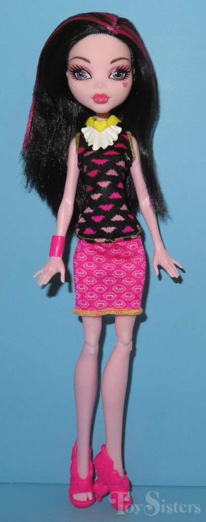 Beast Bites Cafe Draculaura was released in 2015. She has no arm articulation. She was made in China. Her clothes were previously released on Creepateria Draculaura. This playset was previously released as the Creepateria. To see the other releases of the Monster High character Draculaura, click here. To see other playsets from 2015, click here.