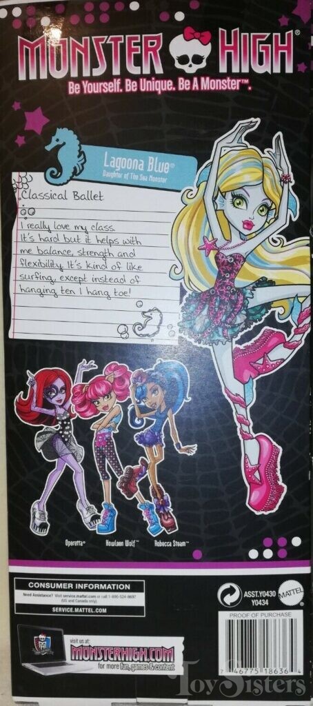 Dance Class Lagoona Blue was released in 2012. She came with a dance bag. She was released as a single and in a Target exclusive multi-pack. She was made in China. To see the other releases of Lagoona Blue, click here.