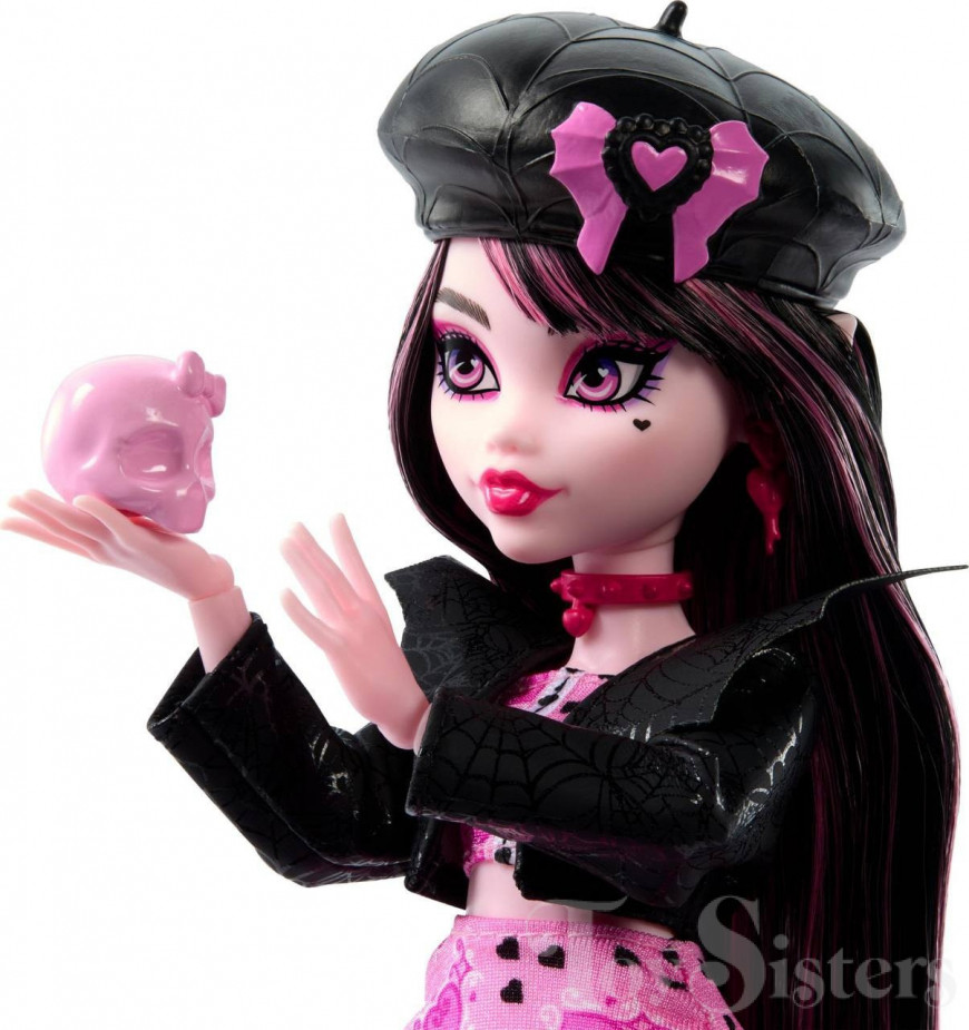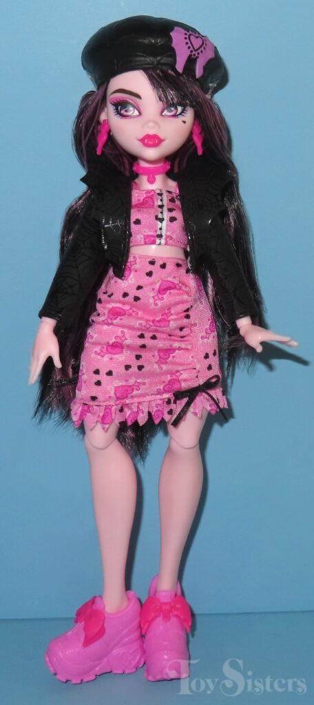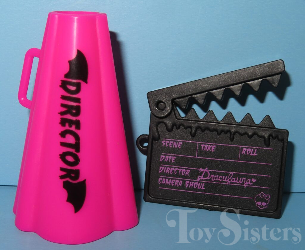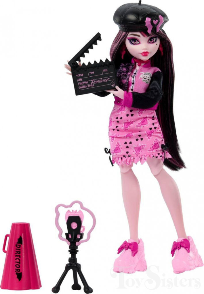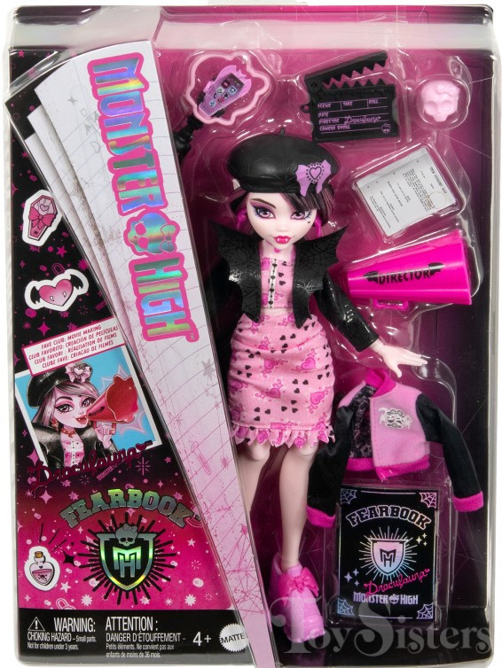 Fearbook Draculaura was released in 2024. She came with a jacket, fearbook, phone, phone stand, clapperboard, script, skull, and megaphone. To see the other releases of the Monster High character Draculaura, click here.