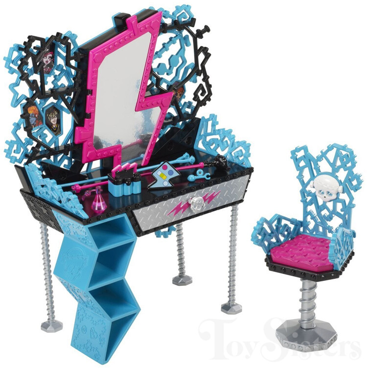 The Frankie Stein’s Vanity playset was released in 2012. The Vanity included a hairdryer, perfume, makeup, makeup applier, and makeup case.