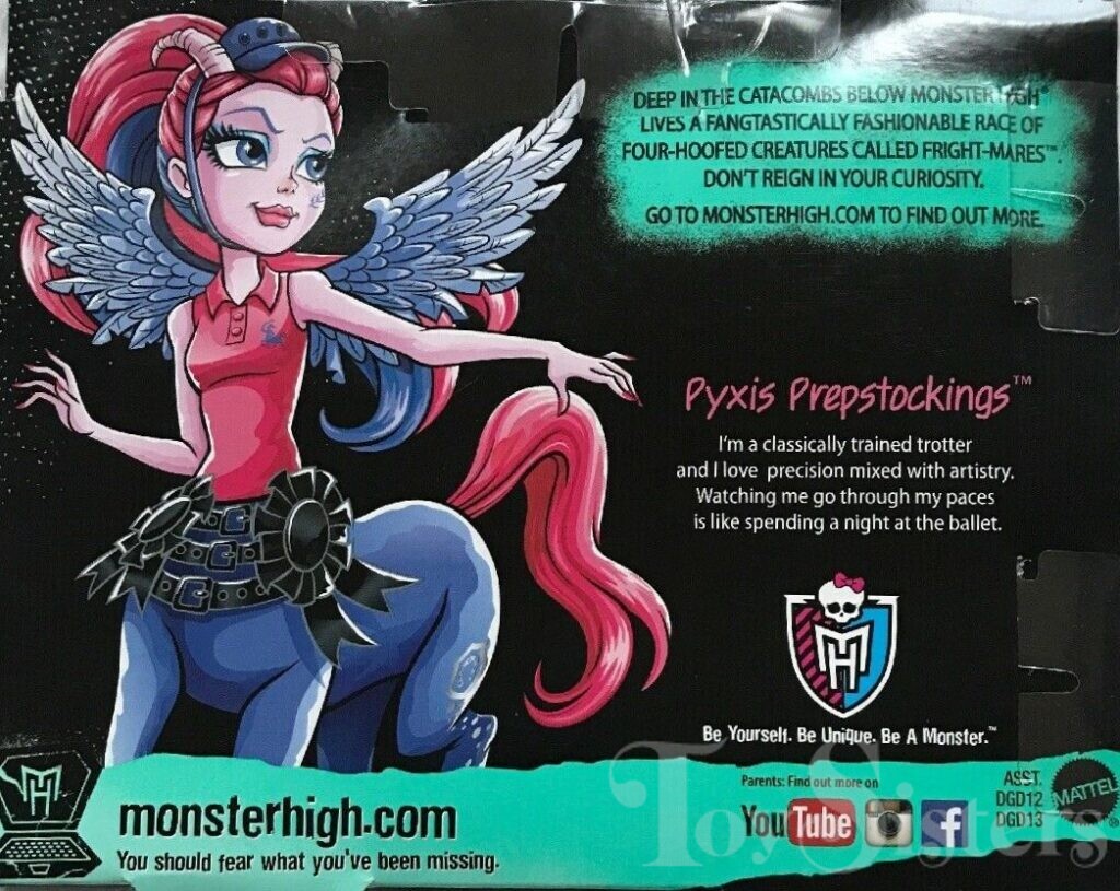 Monster High Pyxis Prepstockings was released in 2015. To see other Fright-Mares, click here.