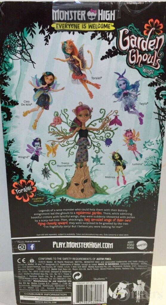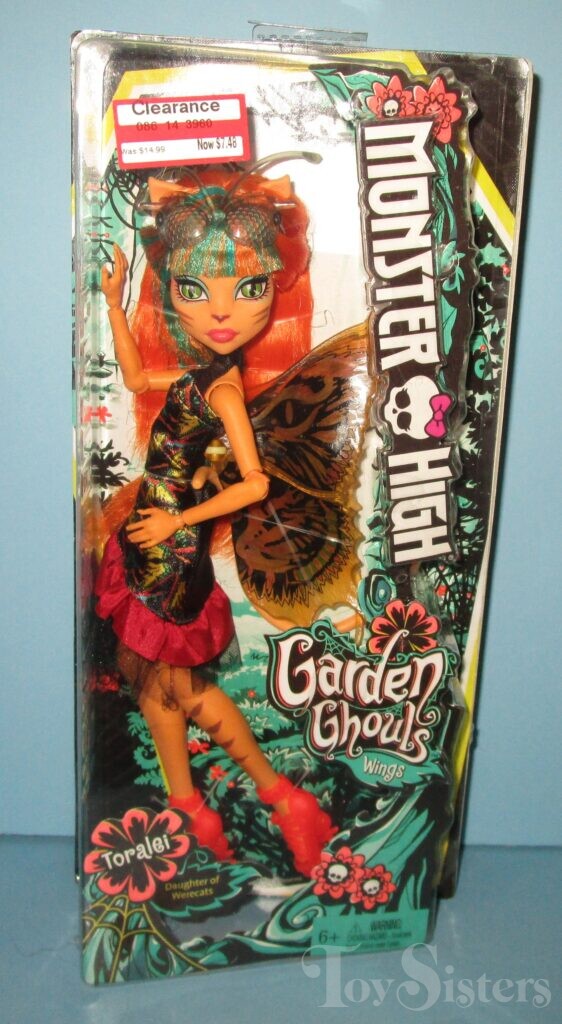 Garden Ghouls Toralei Stripe was released in 2017. She came with glasses. To see the other releases of the Monster High character Toralei Stripe, click here. To see other G2 Monster High dolls, click here.