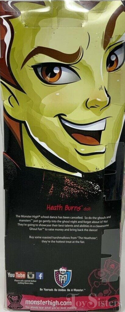 Ghoul Fair Heath Burns was released in 2015.  He has a version made in China and a version made in Indonesia.  His China version was released domestically and his Indonesia version was released internationally.  He came with two marshmallows on a stick.  To see other versions of the Monster High character Heath Burns, click here.