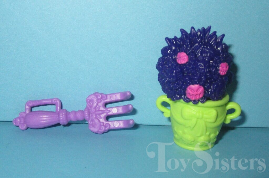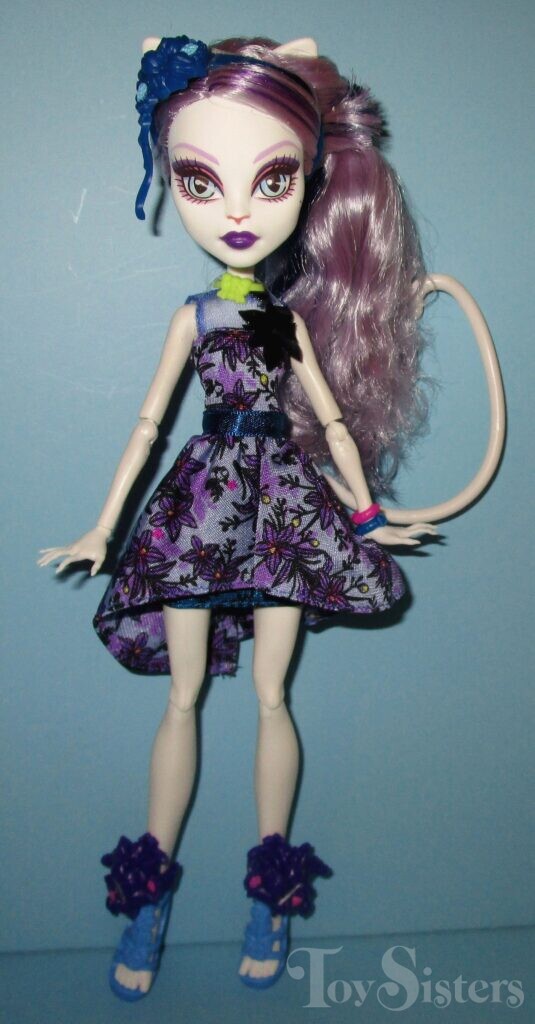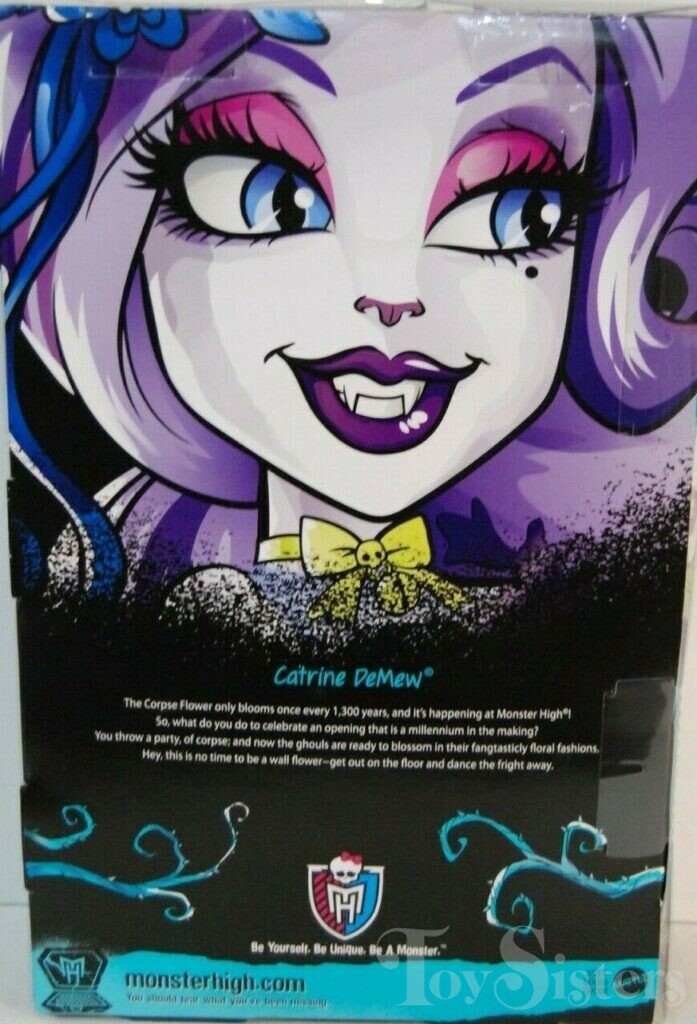 Gloom and Bloom Catrine DeMew was released in 2014. She was made in China. She came with a gardening fork, flower in pot, black brush, stand, and diary. To see other versions of the Monster High character Catrine DeMew, click here.