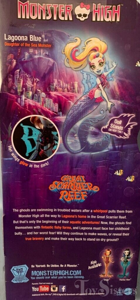 Great Scarrier Reef Lagoona Blue was released in 2015. She was made in Indonesia. To see the other versions of the Monster High character Lagoona Blue, click here.