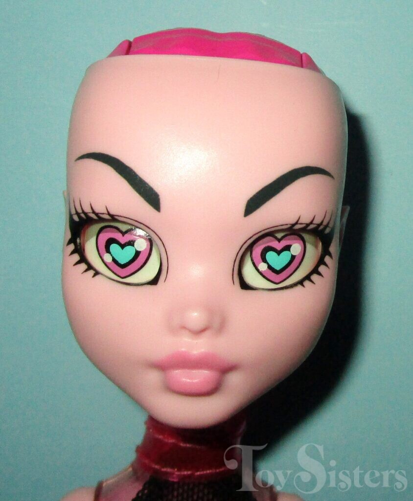 The Inner Monster Fangtastic Love & Fearfully Feisty Starter was released in 2014. When you push a button on the top of her head her eyes rotate to one of three designs. She also comes with a face plate that clips onto her face to give her an additional expression.