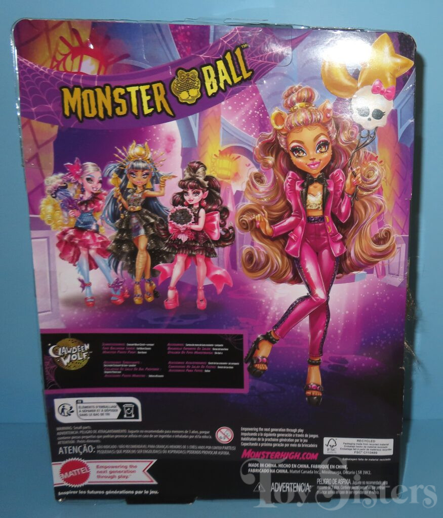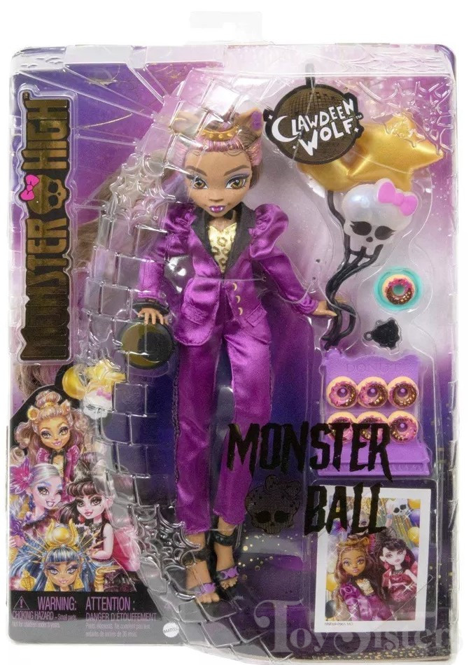 Monster Ball Clawdeen Wolf was released in 2023. She came with donuts, balloons, a compact, and a purse. To see the other releases of the Monster High character Clawdeen Wolf, click here.